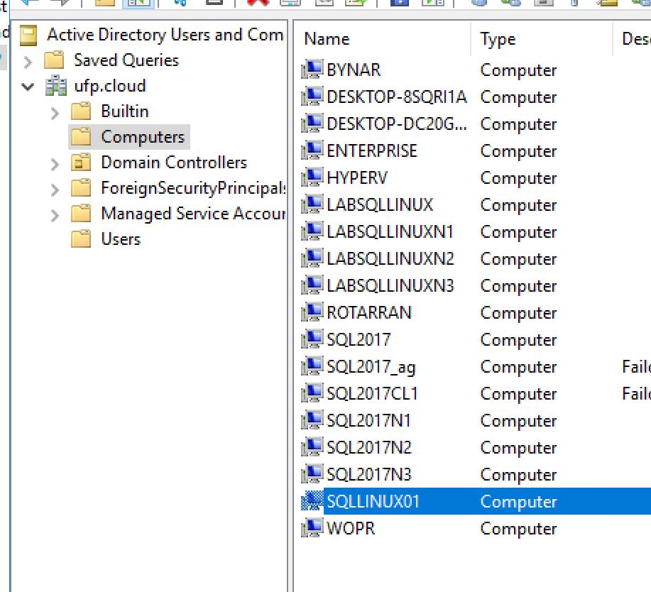 C:\WINDOWS\system32>setspn -A MSSQLSvc/sqllinux01.ufp.cloud:1433 sqlservice